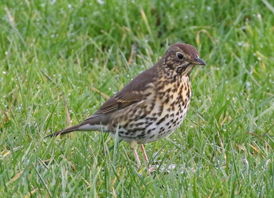 Arriving at the visitor centre at 10am we found the main pool completely frozen over and other than two lonely Redshanks there were no birds whatsoever to be seen. Undaunted we headed to the Bunker hide and had good views of Fieldfare and Redwing on the adjoining field plus a Great Spotted Woodpecker on the feeders and flocks of Pink-footed Geese and Black tailed Godwits flew over. Walking back along the track we had close ups of a Song Thrush and Meadow Pipit and a Bullfinch was seen on the fence.