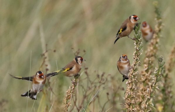 We began by following the boardwalk through the dunes towards the beach. There was a lot of bird activity in the bushes bordering the footpath, in particular large flocks of Long-tailed Tit, Goldfinch and Linnet plus smaller numbers of Greenfinch, Stonechat, Skylark, a Reed Bunting and a Kestrel, our only raptor of the day.
